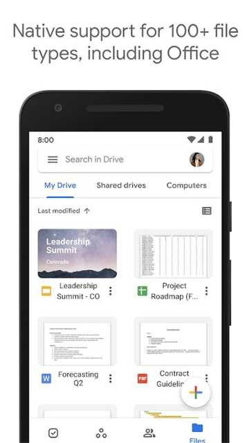 1、支持各类型的文件,用户可以通过Google Drive进行创建、分享、协作各类型的文件,包括视频、照片、文档、PDF等。