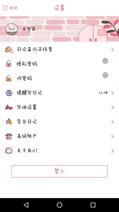 4、备份:日记内容可以备份至云端,即便手机更换都可以找回数据,保留自己过去的回忆。