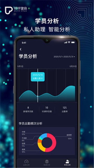 1、科学的根据每位学员身体数据,实时生成学员报告,助力教练针对性地制定。