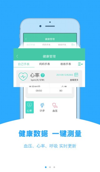 1.一键式老人健康监控,实时更新血压、心率、呼吸等健康数据信息。