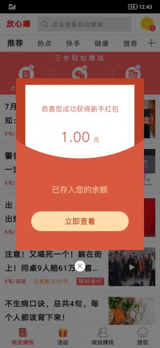 1、在手机上转发文章就能够为您赚钱的应用软件。