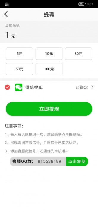 可以提取赚取的10元以上的奖励,第一次取款将在几秒钟内到达,然后需要在24小时内进行审核并收到;