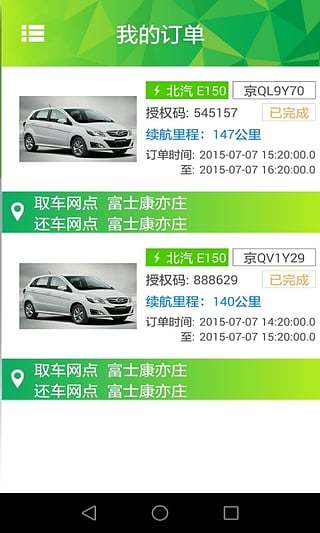 基于安卓平台的新能源汽车共享软件,提供方便快捷的自驾预订、门店查询、订单查询等功能