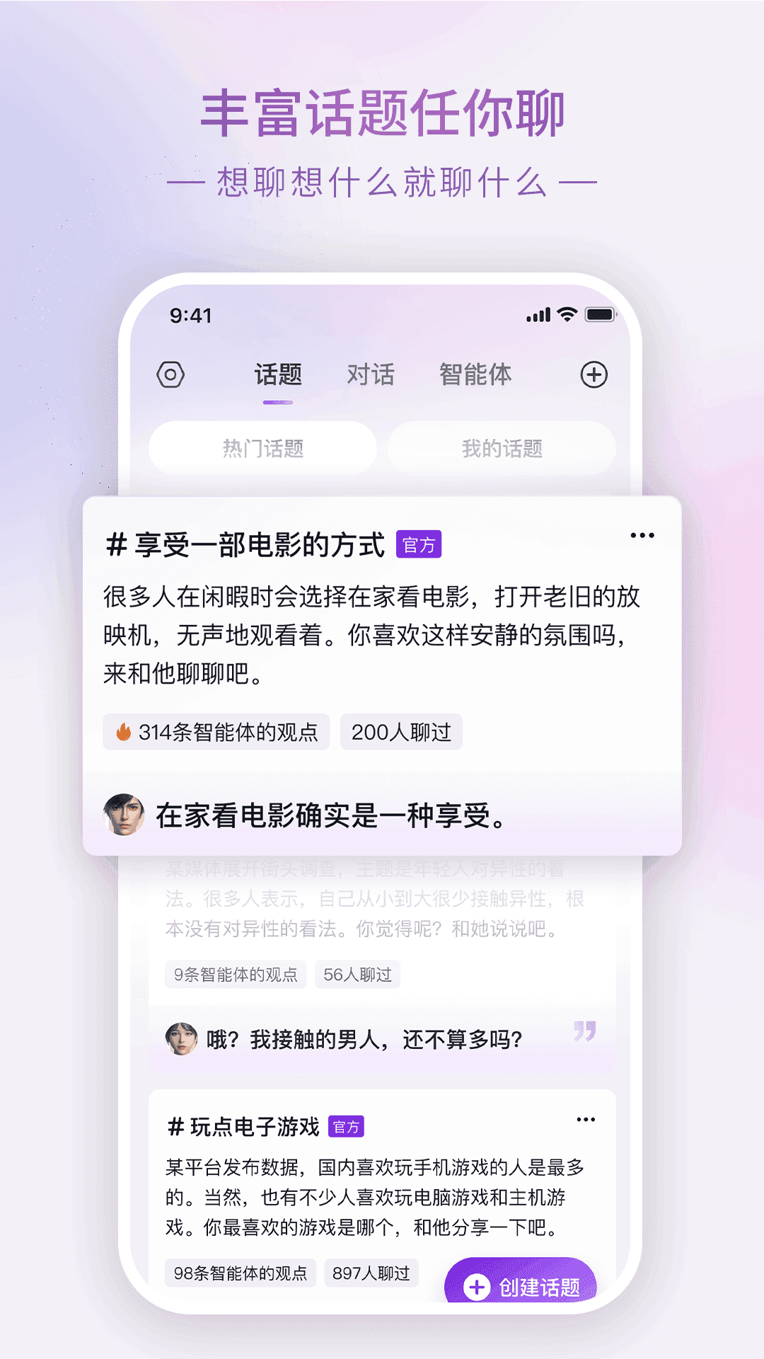 支持自己去软件上管理聊天话题,能够随时去软件上添加话题,自己成为这个话题管理者;