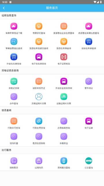 2、可通过出行服务板块查询公交、地铁、自行车、民航、铁路、省际长途等20种出行服务,满足出行需求。