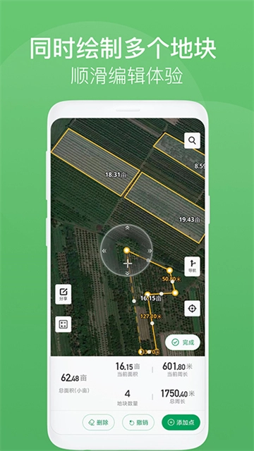 3、更加高效:足不出户在家既可实现测量田地需求,告别传统人工测量。