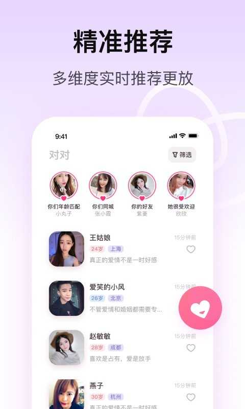 2、匹配系统,根据用户个人资料和喜好自动匹配对象;