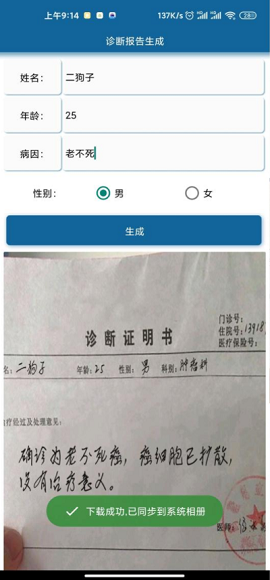 该app可以自动为用户生成个人健康诊断报告,无需手动填写信息。可以根据用户的身体数据和健康信息,自动计算出用户的健康状况和患病风险。