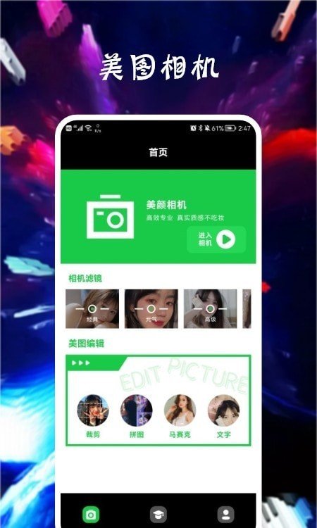 3.任何情况下都可以让每一个人的自拍照轻松简单,开辟新的天地。