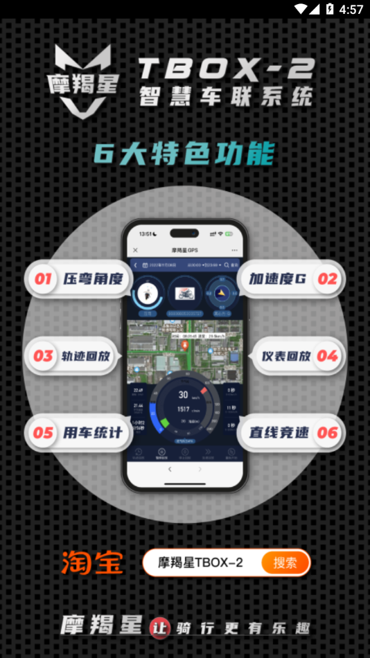 摩羯星®智慧车联终端可监测,记录以及回放车辆行驶数据,车主的驾驶动态数据,如压弯角度,油门开度等个性化/专业化数据。亦可用于在赛道上记录车辆以及车手的表现。