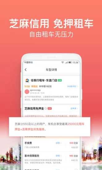 【免押租车】:芝麻信用满550分即可享受减免车辆押金和违章押金,开启信用免押新时代;