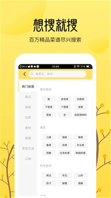 能够阅览超热门菜谱和食材,迅速查阅菜谱。