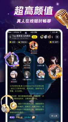 【语音互动】在线派单、真人点歌、语音交友……语音聊天室24小时在线互动,各路潮流教主齐聚,让你享受尊贵待遇!
