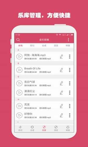 专业音乐编辑:支持音乐编辑,合并,混音,提取等功能,轻松播放铃声和音乐。