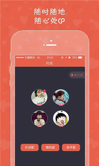 这是我们的核心的玩法,不管你是单身随缘,还是有特定择偶条件,或者已经有了对象,都可以在这里来找到TA,这里针对3种状态提供了3种不同的匹配方式“随机配”、“条件配”、“情侣配”。我们提供了多种玩法,让你和TA刚开始通过“假装”的状态来接触,新奇且避免尴尬。