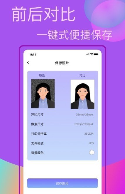 一键美颜,拥有强大的美颜功能,可自由调整,选择美颜效果,简单操作,让证件照更美丽。
