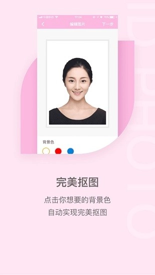 抠图是魔法证件照app的一大功能特色,它可以随意切换证件照的底色,蓝色、白色、红色,一张人像照可以形成多种底色的证件照,还可以设置修改尺寸,调整人物比例。