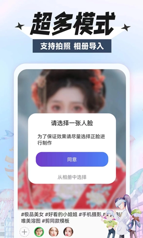 作为一款智能AI换脸照片编辑软件用户随时可以在线根据自己的兴趣进行选择切换,展示了更多的风格,带给大家更多的丰富拍照内容,各种不同的滤镜贴纸都是可以完全免费使用的,为大家带来不同的换装体验。