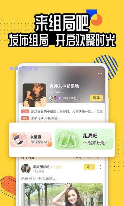 【俱乐部,多人互动嗨】私人俱乐部,邀请好友一起来嗨玩,多人组局,相亲局,交友局,恋爱局,聊天局,语音K歌,游戏开黑,怎么玩都随你做主。
