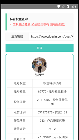 2.可以对里面的账号进行权重的查询,可以很快的获得一些账号的数据分析情况。