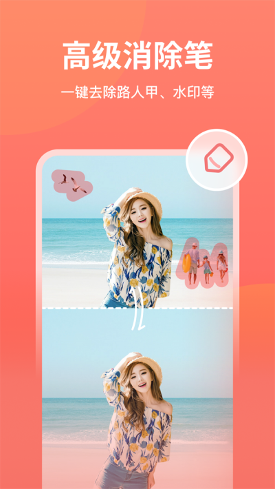 1.还提供了高级消除笔,可以一键去除路人甲和去除各种水印。
