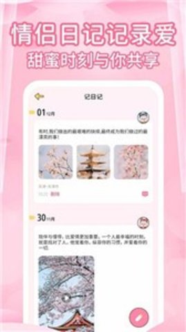 2、【爱情日记】相信很多人在恋爱过程中都会想要记录和彼此关系的进展,以及各种恋爱的心情,这款软件也同样拥有爱情日记的功能,能够便于情侣们进行记录!