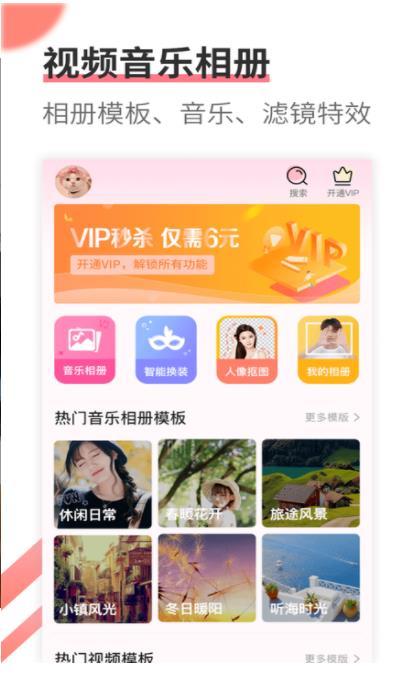 视频音乐相册,各种模板,滤镜,特效都可以去使用;