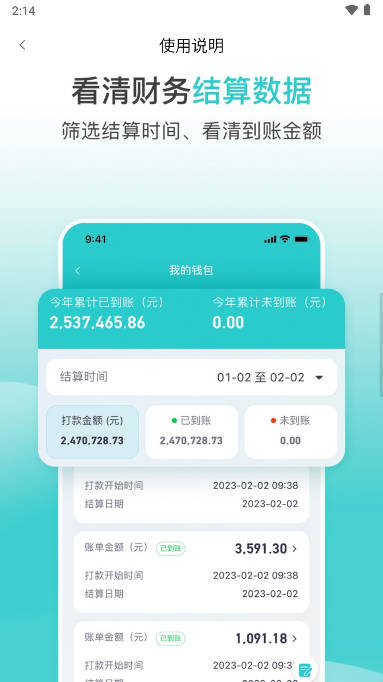 筛选结算时间、看清到账金额