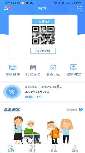 2、包括患者自我评价、课程管理、患者日记,以及相关健康讲堂等;