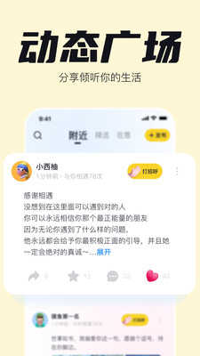 一点app是一款为年轻人打造的社交聊天软件,在这里可以找到更多的同好,以兴趣为基础进行交友,结交到的都是志趣相投的朋友,聊天没有压力,还有超大的社区广场,可以与千万的网友一起畅聊,分享生活中的点滴开心,交朋友在一点就是这么简单。