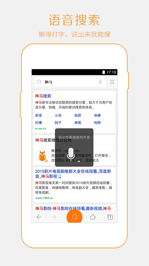 1、【语音搜索】强大语音识别,搜索动口不动手