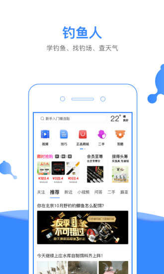 1、找钓场、查天气、学钓技、看视频、买渔具等超多实用的功能