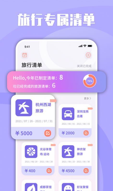 2、我们根据每位旅行者的习惯,更好的管理个人化的旅行清单;