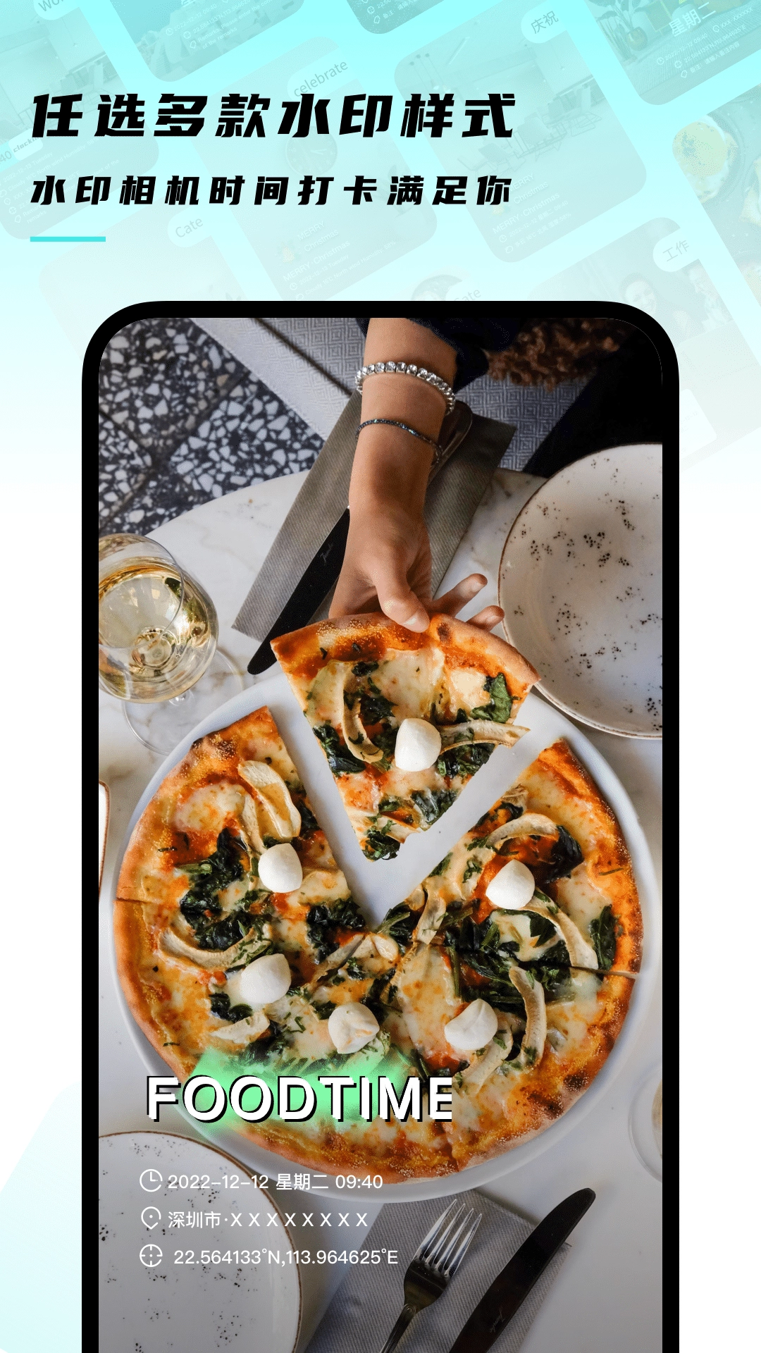 1、可以综合选择不同的水印样式,每个人都可以随意拍摄;