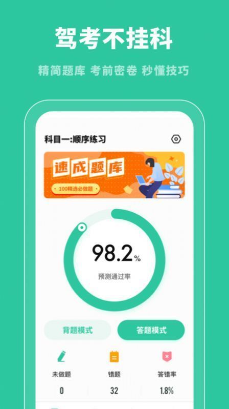 3、通过率预测:根据包含的错题综合答题率,预测通过率,让考试更有把握。