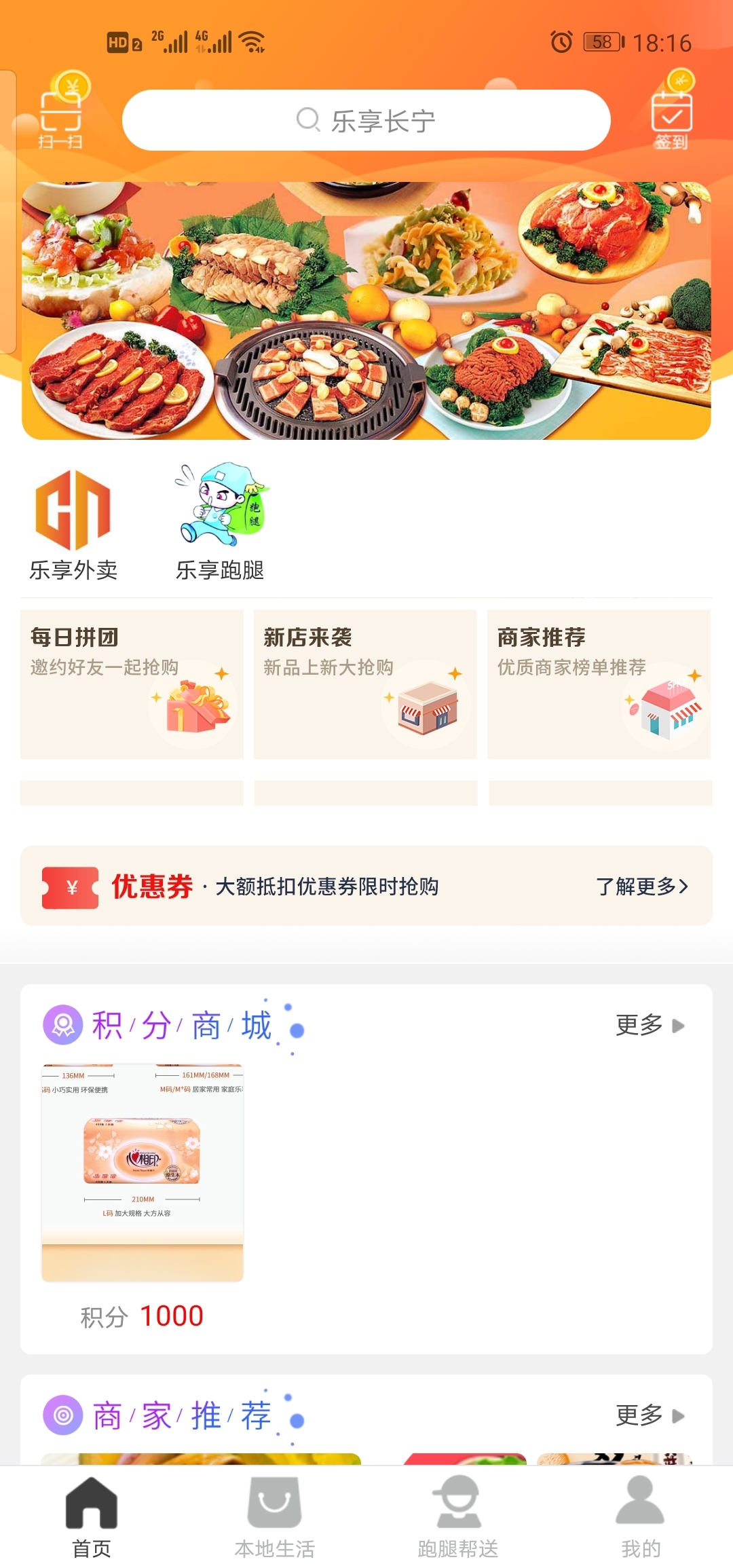 提供多种服务功能,如当地购物商场,外卖服务,便利食品市场,日常团购等;