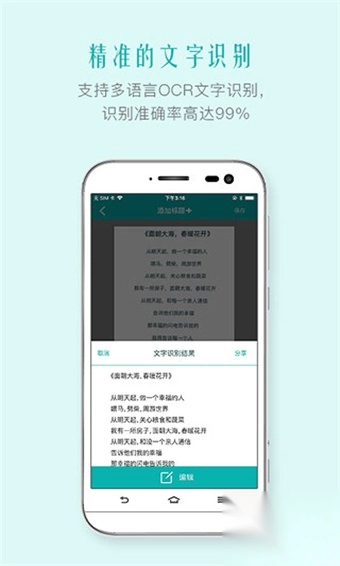 2. 高品质扫描,全能扫描王配备先进的移动扫描技术,自动去除杂乱背景、性能媲美现代桌面扫描仪。自动优化和模糊修正功能助力获得高质量的扫描件。