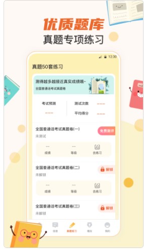 1、一款专业的普通话测试工具,可帮助您提高听说读写能力;