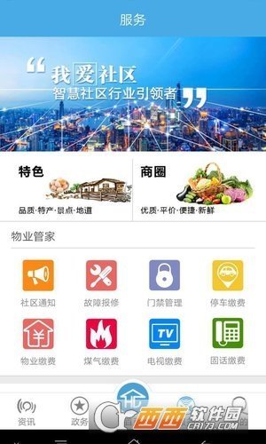 3.物业平台:物业报修、在线缴费、接收社区通告。