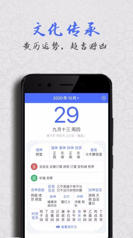 3、点击黄历信息可以查看现代文说明,不再担心看不懂;