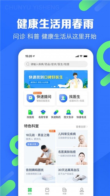 春雨掌上医生是一款手机专业医生问答app,用户可以在线咨询名师名医,帮助解决各种疑难杂症,提供更优质、经济、便捷的线上医疗服务。同时还可以在app上快速了解查询各种医疗知识,获取更全面的医疗信息,帮助患者恢复健康。