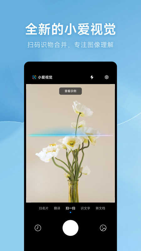 小爱视觉(原扫一扫)是小爱同学的眼睛! 它是一款由小爱团队研发出品,集扫一扫(扫码识万物)、识文字、提取表格、提取PPT、扫描转PDF、拍照翻译、取词翻译 多个功能为一体的智能扫描软件。