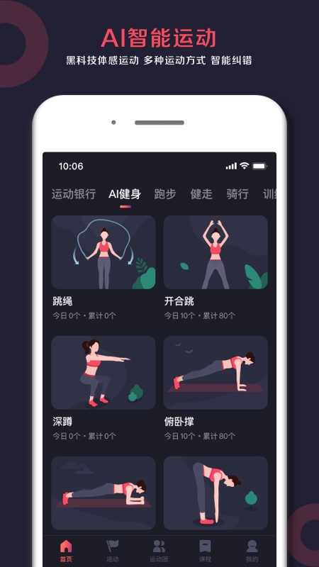 3、【AI智能运动】智能AI运动,无需外部设备,0 使用门槛,操作简单,全程智能语音指导,自动精准计数计时。提供跳绳、开合跳、仰卧起坐、深蹲、俯卧撑、平板支撑等多种锻炼形式,实时捕捉用户关节运动,纠正运动姿势,保障运动安全。