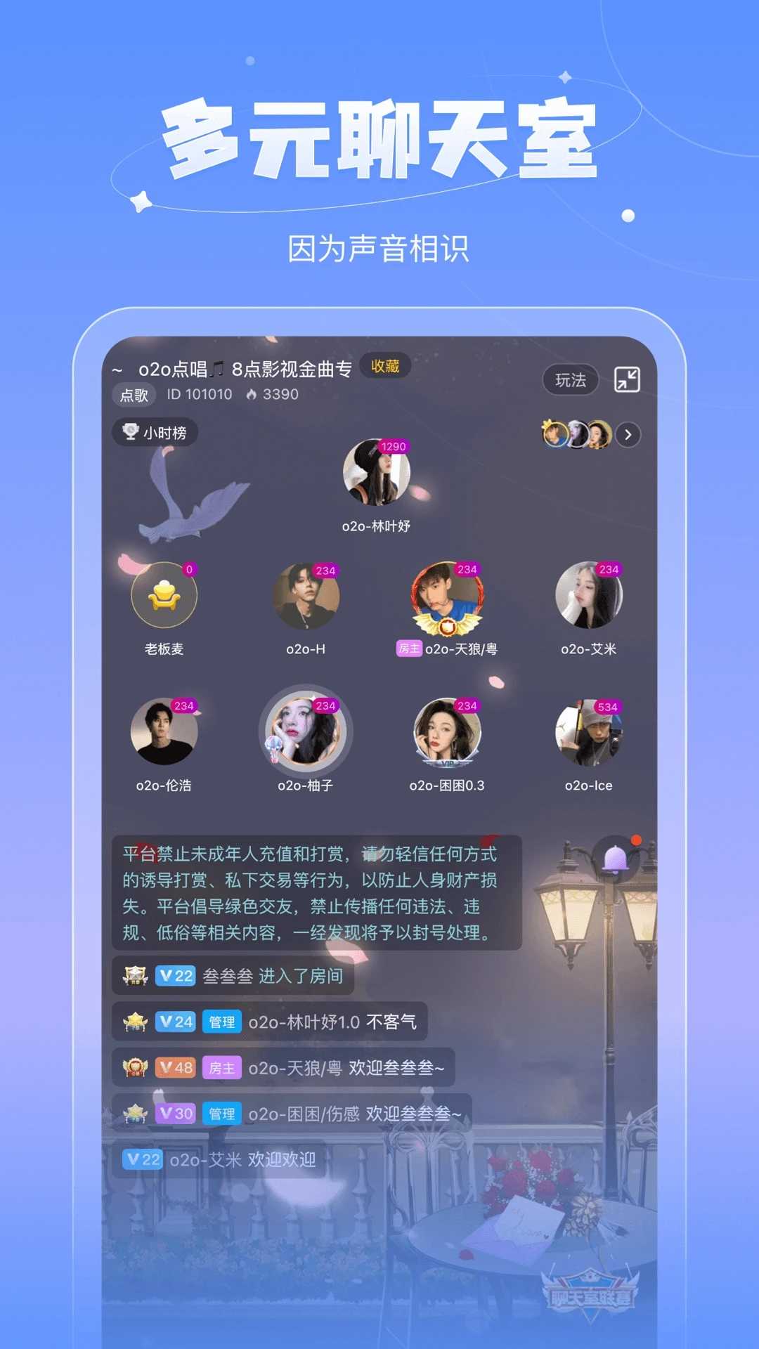 语音聊天: 鱼丸语音软件支持多人语音聊天,用户可以在聊天室中与多人进行语音聊天。