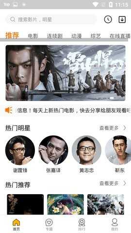 下载安装星格影院软件。打开软件,进入主界面。
