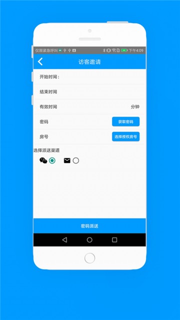 4、派送渠道,打开访客邀请时派送的渠道是能自由选择的,短信或者电话的方式都可。