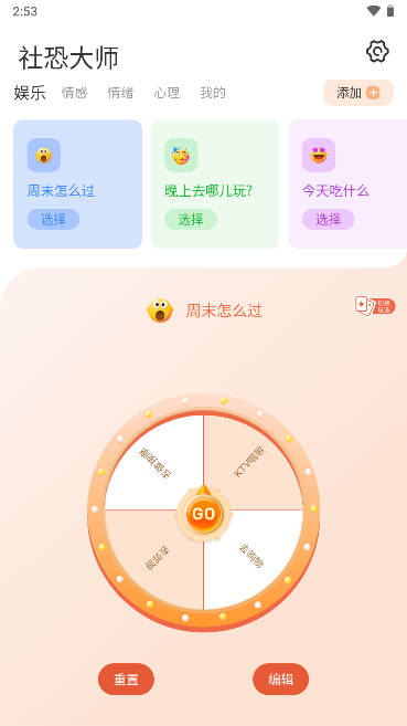 1、事先设定好的选项,用户也可自由添加个性化选项到轮盘上。