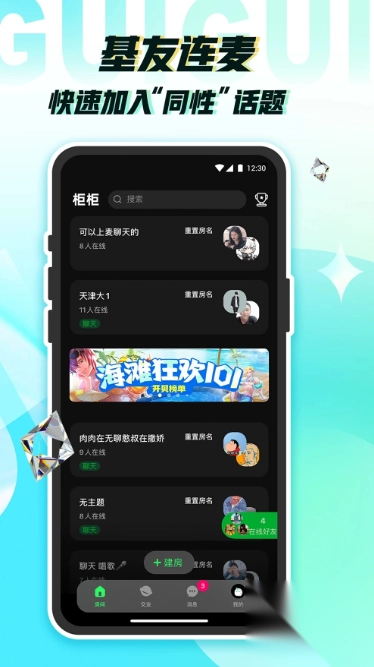柜柜交友是一款很优秀的手机社交软件,线上的交友活动实时开展,此处提供的信息非常真实且使用安全,可以和自己喜欢的异性开房间,用户可以尽情的参与其中,结交志同道合的人,非常的方便!