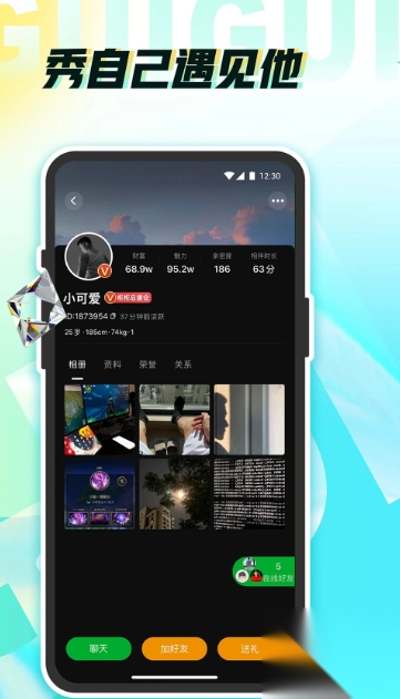2、实时在线关注,喜欢动态,在线互动没有任何限制,即使没有朋友也可以发起聊天。