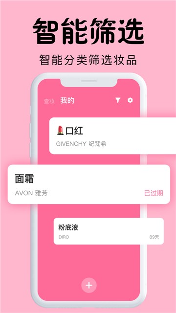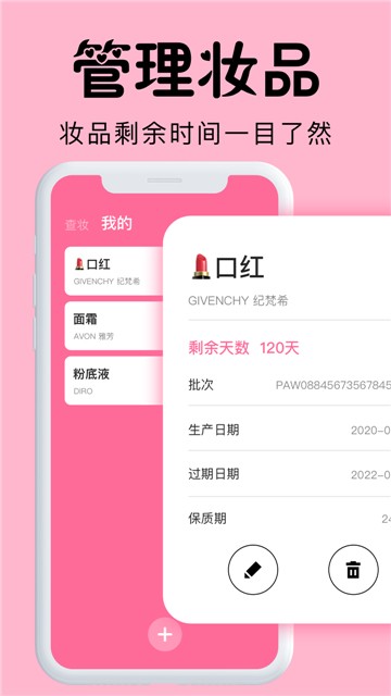 心心查妆,帮助用户查询管理化妆品的生产日期,通过化妆品的批号进行查询生产日期,帮助用户避免买到临近生产期限的化妆品,同时拥有化妆品生产日期到期时间提醒,通过列表的形式呈现,剩余时间一目了然,各位小伙伴要注意,使用过期的护肤品是会使皮肤烂脸的哦。